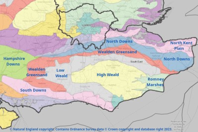 Over the centuries, the Weald is thought to have undergone repeated cycles of clearance and re-forestation; much of the forest has disappeared but the region still retains many woodlands. It is nowadays mostly characterised by gentle hills, ridge roads, sunken country lanes and sleepy villages. The soil is often not fertile enough for agriculture, it is a land of orchards, hop fields and cattle breeding (the Weald has its own breed of cattle, the so-called Sussex cattle). Thanks to its mild climate, the region has recently turned to growing wine on its slopes with much success.